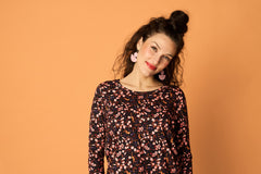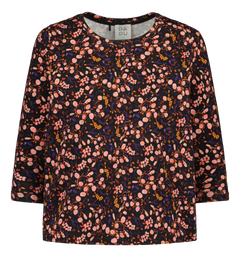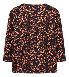Women's 3/4 sleeve printed shirt with Berrycloud pattern. The shirt has a round neckline and a relaxed fit. The hem reaches the upper hip and the sleeves are three-quarter length. Made from high-quality and comfortable organic cotton-elastane jersey. Please check the size chart for approximate measurements!